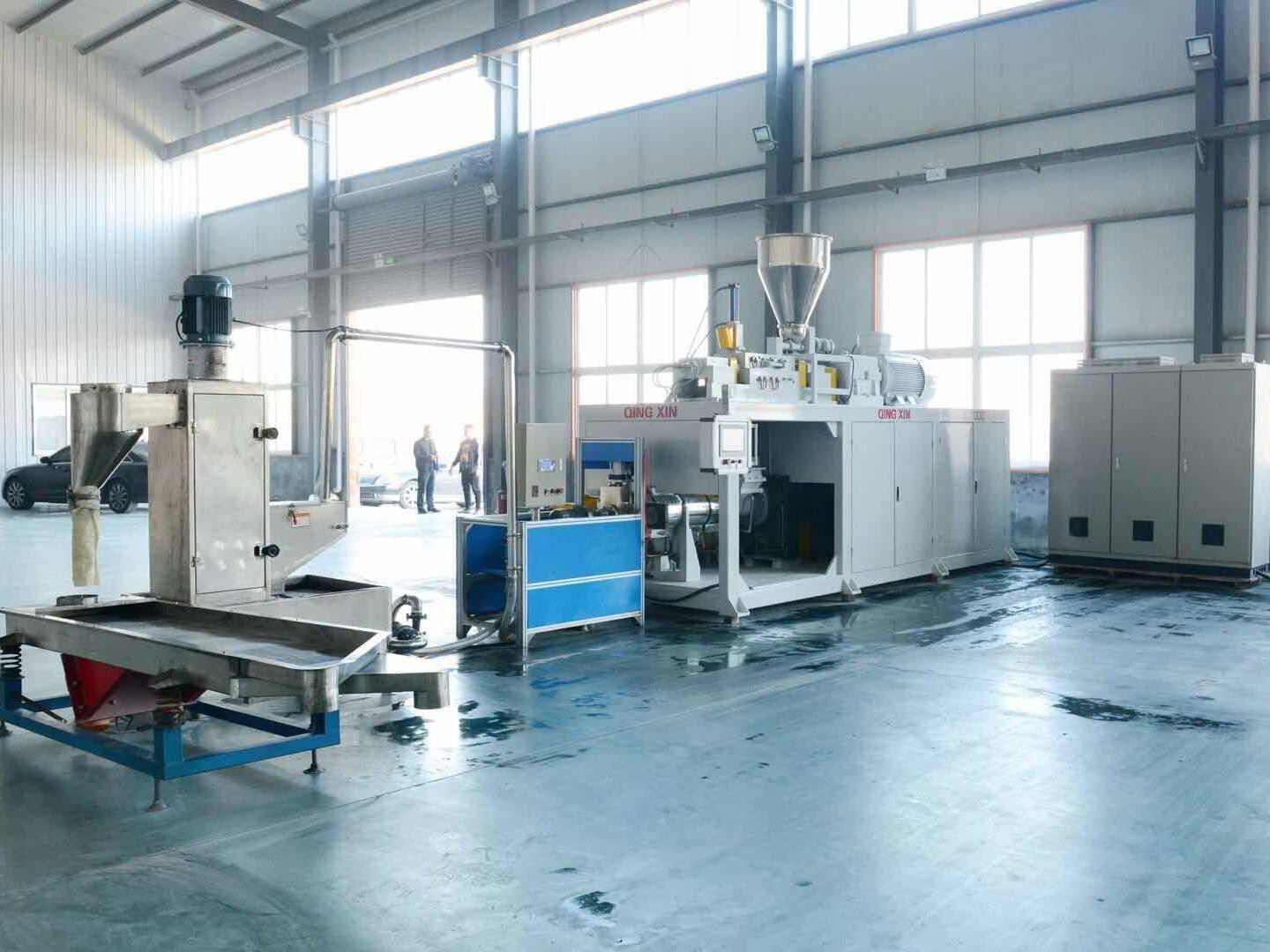 山东庆昕机械科技有限公司是一家专业从事以同向双螺杆挤出机为核心的塑料高聚物配混改性设备以及相关工艺与工程领域的技术开发,及配套辅机的科研开发和生产制造企业。拥有多名在双螺杆领域从事研究和生产的高级工程师、资深专家和经验丰富的现场调试工程师。拥有加工中心、数控镗床、车床、螺纹磨床及各种加工设备80多台,并且配备了现代化的品质检测中心,月加工筒体能力500多节,年生产机组300多台。投入巨资研制生产的多元复合流、压延石塑纸,具有耗电省、产量大、自动化程度高等特点,可根据客户的不同要求,生产不同厚度、不同面幅、不同价格、不同用途的各类石塑纸设备..